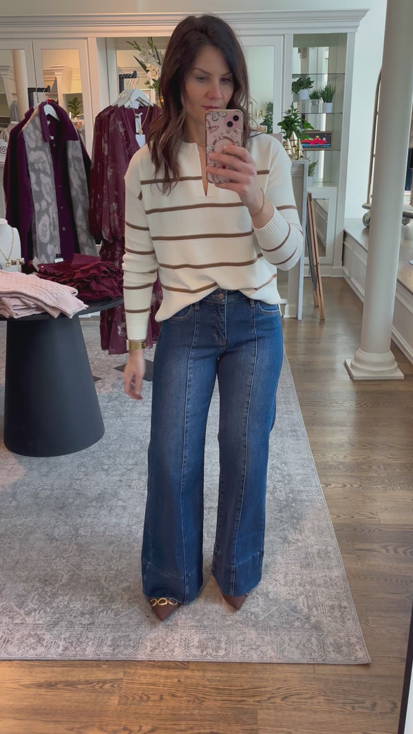 RISEN Tummy Control High Rise Wide Leg Cuffed Jeans