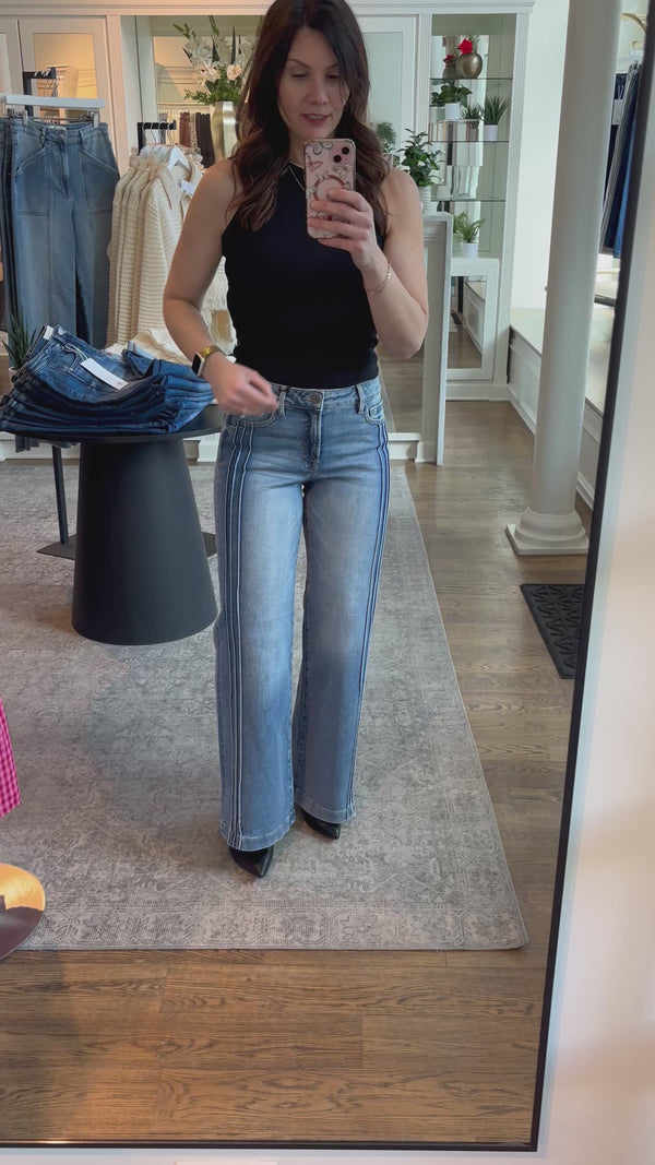 RISEN Tummy Control Mid Rise Wide Leg Jeans