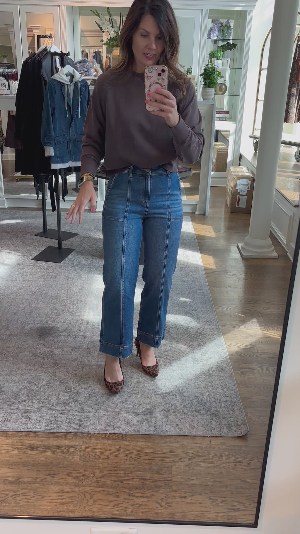 RISEN Dark Wash High Rise Crop Straight Front Seam Detailed Jeans